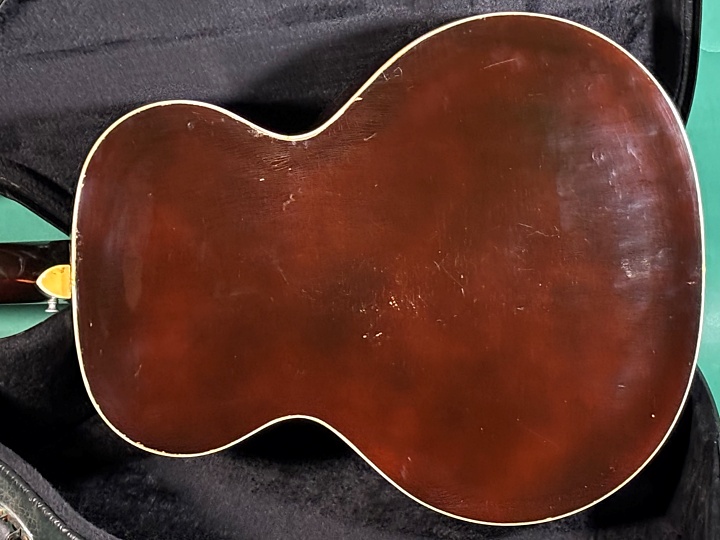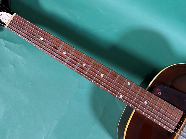 ネック裏はタッチアップ、オーバースプレーされております。指板はところどころ凹みを埋めた痕があります。バインディングのセルは何箇所か途切れていたのを補修しています。オリジナルピックガードは経年による変形、反りが見られますが問題なく使用可能です。