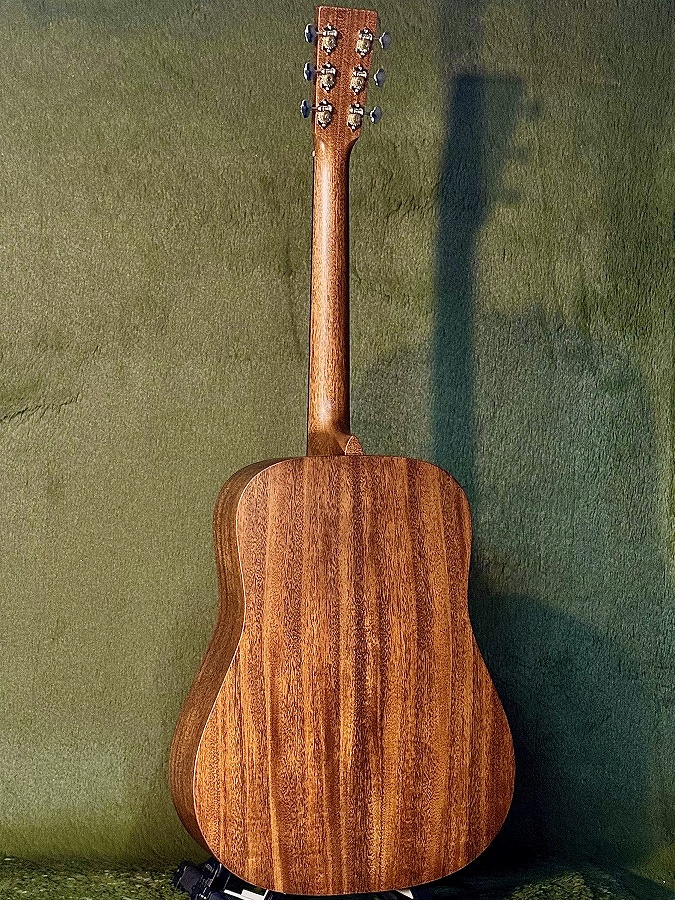 サウンドは、マホガニー特有のあたたかみと中音域のまとまりが魅力。Golden EraスタイルのスキャロップドXブレイシングを採用することで、ドレットノートサイズならではの音量も相まって、鳴りと豊かなレスポンスを実現しています。