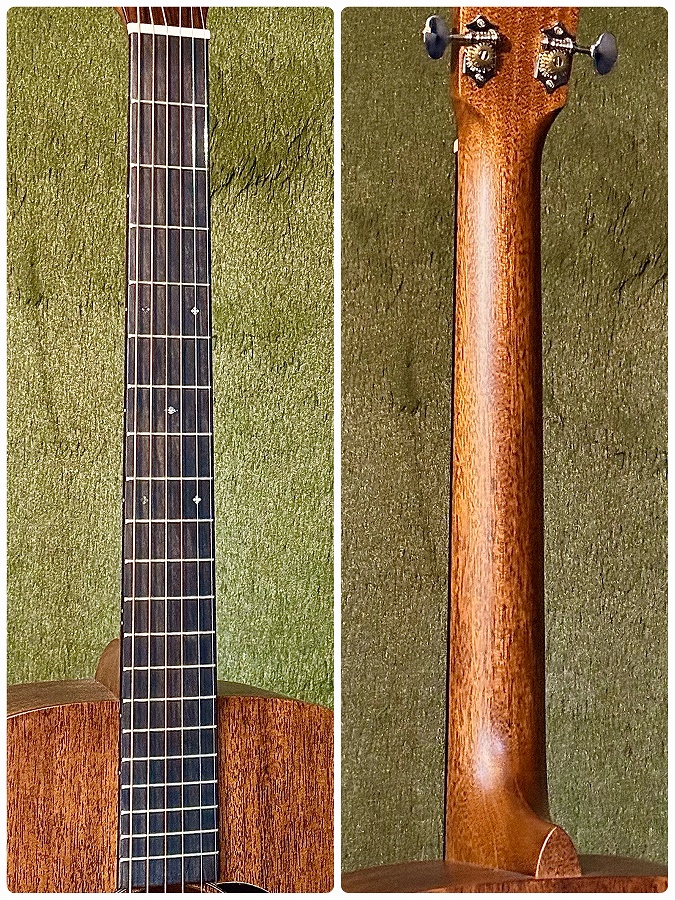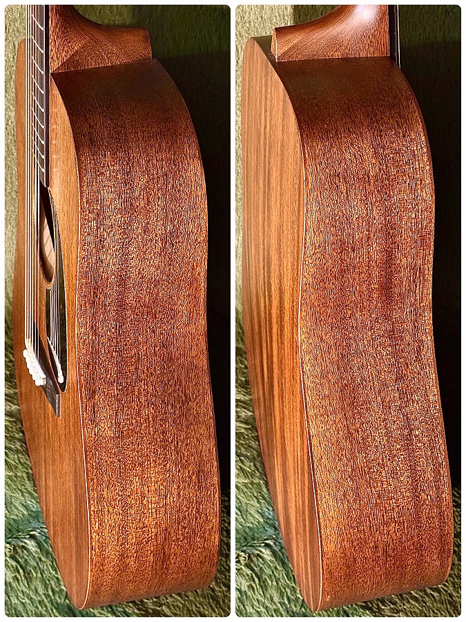 全体にマホガニーを用いたオールマホガニーボディに、落ち着いたサテン仕上げを採用。シンプルで上品な佇まいは、クラシックなMartinらしさを漂わせつつも、現代のプレイヤーにも自然に馴染むデザインです。