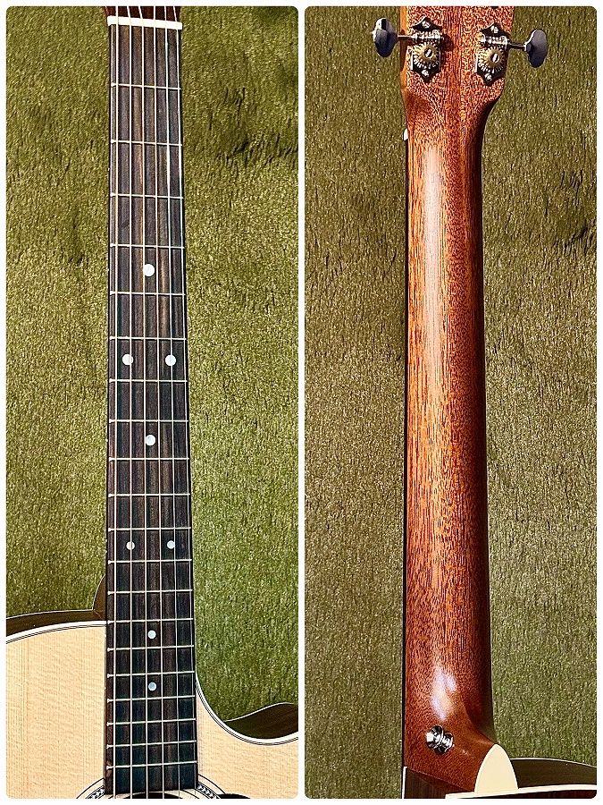 ■表板:スプルース単板…クリアで伸びやかな音が出力される、表板として最もスタンダードな木材。