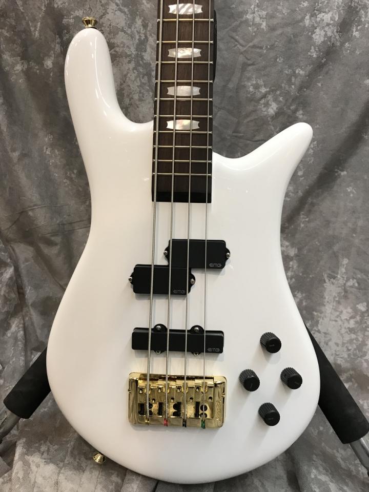 34インチスケールとEMGの完成されたエレクトロニクス・パッケージを採用。4弦モデルのピックアップはリバースのP/Jの構成、ゴールドハードウエアと組み合わせたハイグロス・ブラックとなります。