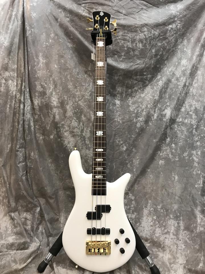 世界的に著名なベース・プレーヤーが挙って手にするスペクター・ベース。ウェイト・リリーフを施したノースアメリカン・メイプルウイングボディ、3ピース・スルーネック構造、マザーオブパール・クラウンインレイをあしらったローズウッド指板、そしてプロフェッショナルグレードのSpectorハードウェアで構成されています。