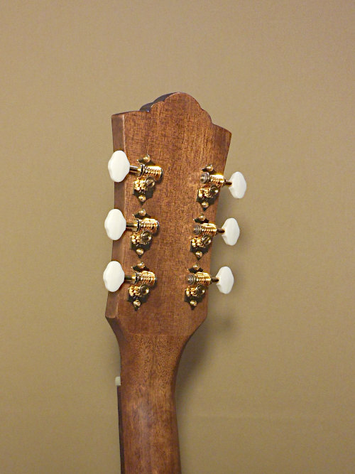 ギルド・ウェスタリーコレクションはギルドギターの長い歴史に敬意を表しながらも現代的なスペックを備え、リーズナブルながらコストパフォーマンスに優れたシリーズ。OM-120はトラディショナルなオーケストラボディを継承したモデルで、抱えやすいスマートなサイズとボディ形状にロングスケールを持っています。ボディはオールマホガニー&オール単板構成のハイスペック。マホガニーの深い色合いにパールのホールリングが映える渋いルックス。ヘッドにはギルドの伝統的なチェスターフィールドロゴが入っているのも嬉しいところ。コンパクトなボディながら張りのある鳴りが楽しめ、フィンガープレイからストラミングまでマルチに対応します。コンディションはごく細かな擦り傷等はありますが、サテン仕上げの為それほど目立たず、USED品としてはきれいな状態です。ペグはゴトー製のアイボロイドボタンのものへ交換されております。消耗部品の余裕もあり、今後の演奏には十分な状態です。