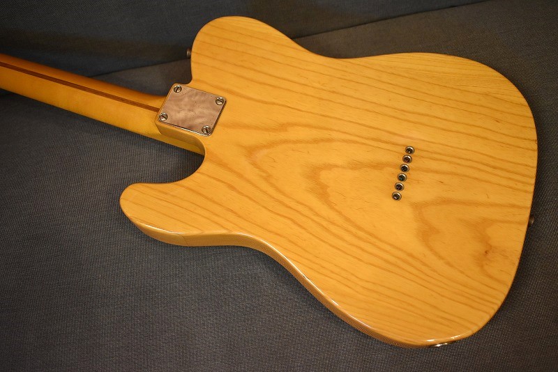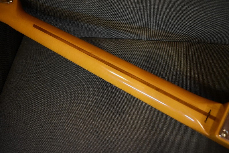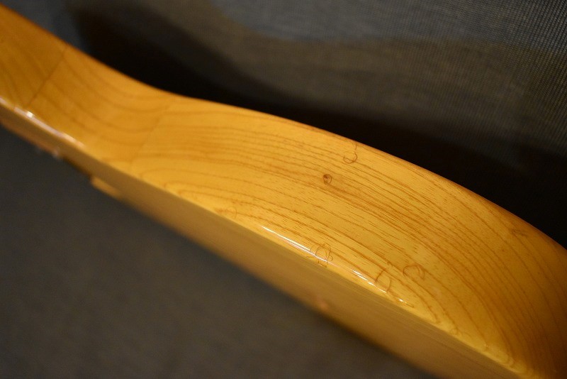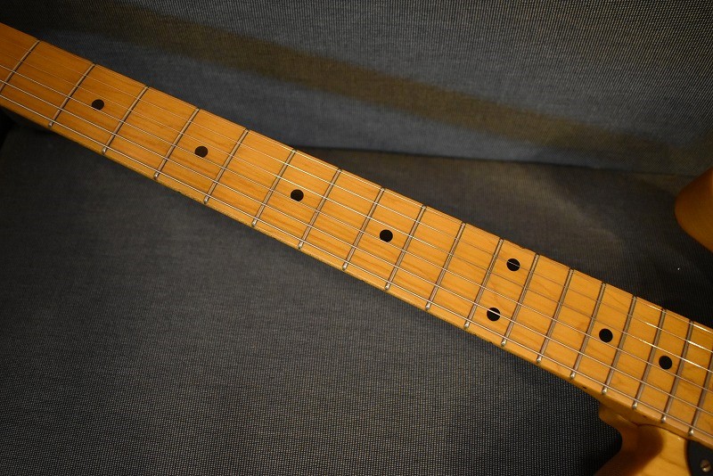 ボディはライトウェイトアッシュ、メイプルネック・指板、ネックシェイプはVシェイプ、ブラックガード、丸型のストリングガイド、ネジはすべてマイナスと、かなりこだわりの詰まった仕様です。