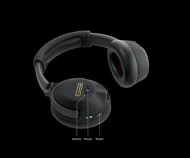 オン・イヤー・コントロール/プリセット・セレクター/ギター音量/電源/ Bluetoothペアリング・ボタン