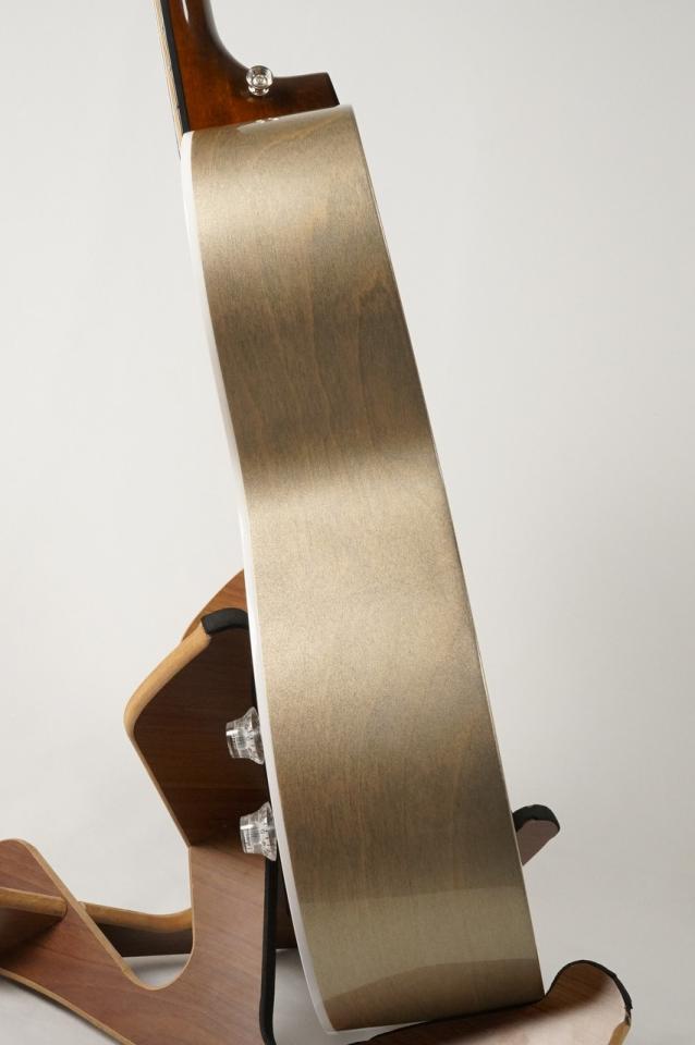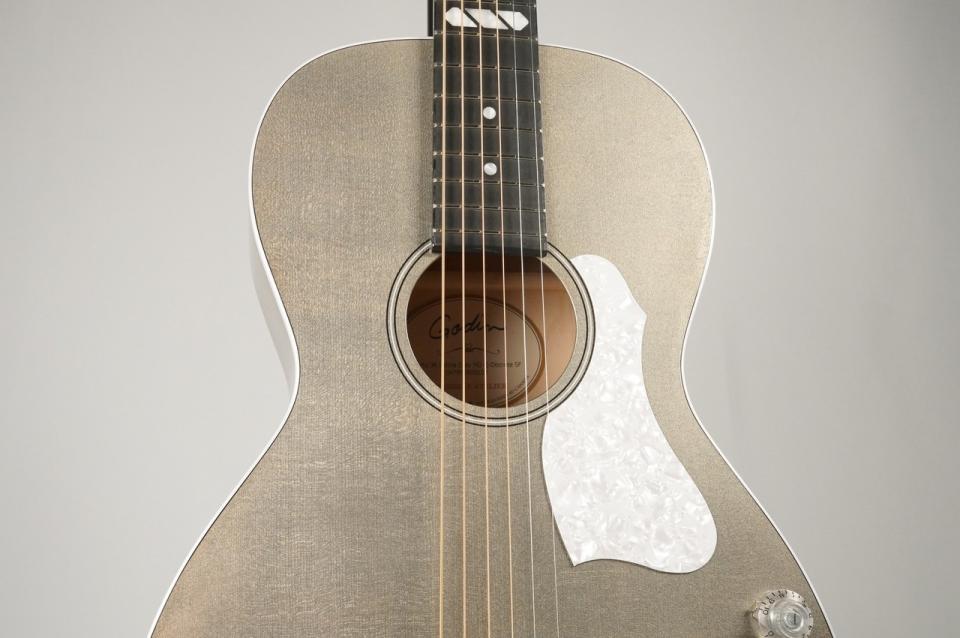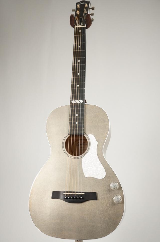 コンパクトで人気のクラシックなパーラーギターシェイプにパールピックガード、リッチライト指板、エボニーブリッジ、12フレットのメトロポリス・インレイ、などモダンな魅力を追加。