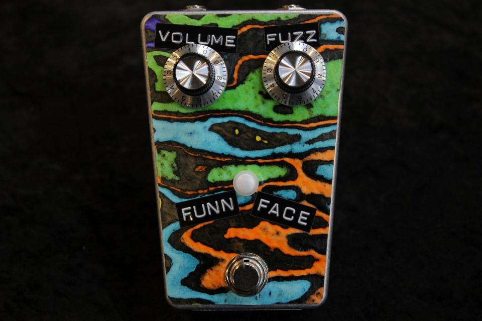 シリコントランジスタを採用したファズフェイス系ファズ『FUNN FACE』にスキモレザー外装と鮮やかなペイントを施したサウンドメッセ2025出展の10台限定品です!