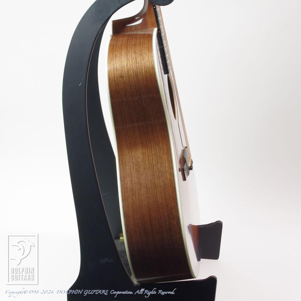 アンティークバーニッシュフィニッシュと名付けられたヴァイオリンニスで仕上げられた本モデル。エイジド加工は製作中に施し、ルックスやサウンド面でもヴィンテージギブソンをモチーフにしており、新品にして長年弾き込み、角が取れた様なトーンに重厚なサウンドを放ち、このヴィンテージフィーリングに驚かされます。