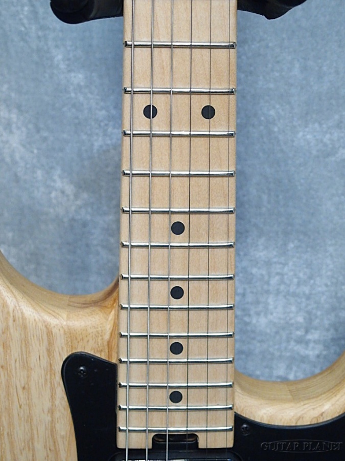 ボディは抜けが良く、エッジの効いたサウンド、綺麗な杢目でナチュラルや、シースルーフィニッシュに使用される事の多いAsh材を使用、ネックには強度に優れたMapleを使用しさらに強度を確保するため Graphite Reinforcementを使用しています。指板は粒だちの良いサウンドのMapleを使用、ハイポジションに向かってRが緩くなるコンパウンドラディアスでコードワーク、ソロワークどちらも弾きや易く、フレットは軽いタッチのJumboタイプをとなっています。
