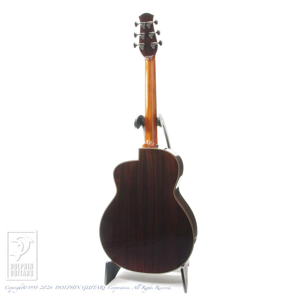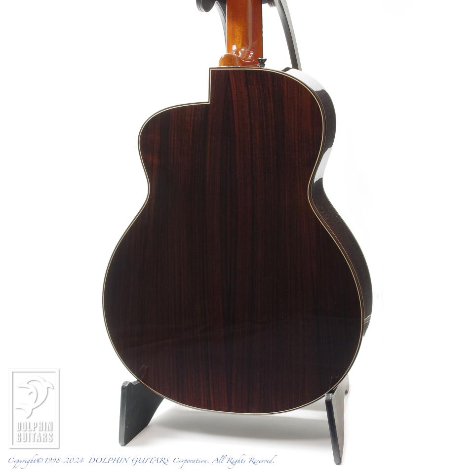 トップ材にはムーンスプルースを、ネックにはマホガニーの中でも質量の大きいサウスアフリカンマホガニーを採用するなど、本モデルにおいても杉田健司氏の意匠が感じられます。