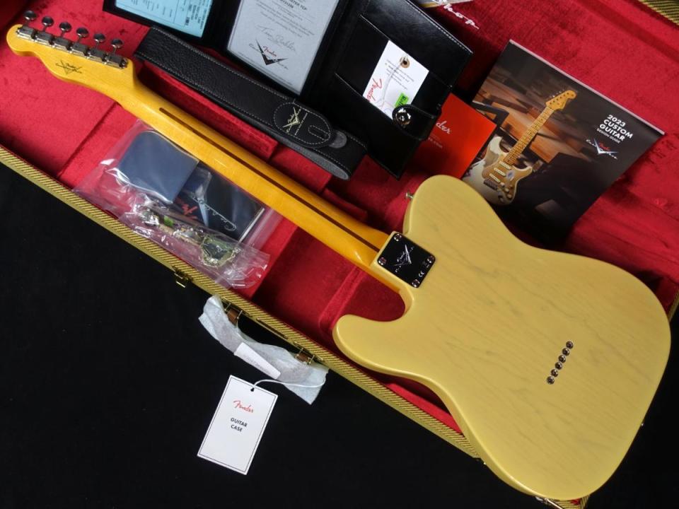 数あるカスタムショップのラインナップの中でもひと際人気の高い、"ブラックガード・テレキャスター"塗膜の薄いFlash Coat Lacquerを採用した"Fender Custom Shop 1952 Telecaster Time Capsule Faded Nocaster Blonde"です。
