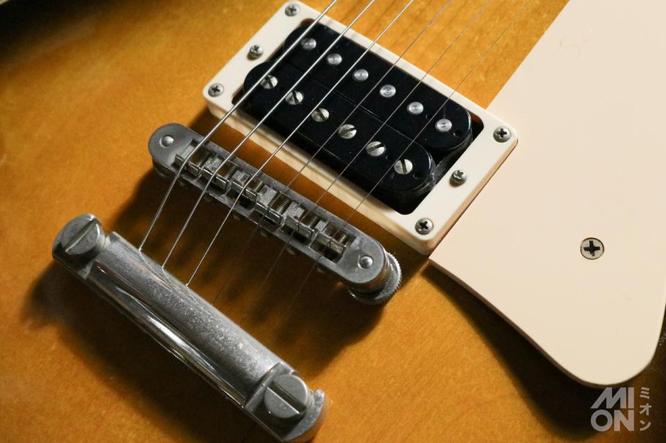 配線やピックアップはオリジナルと思われ、「Gibson USA」と「T」刻印が裏面に入っている、ブラックカラーのオープンタイプのハムバッカーです。(この時期のオリジナルは「496R/500T」) おそらく交換はされていないでしょう。