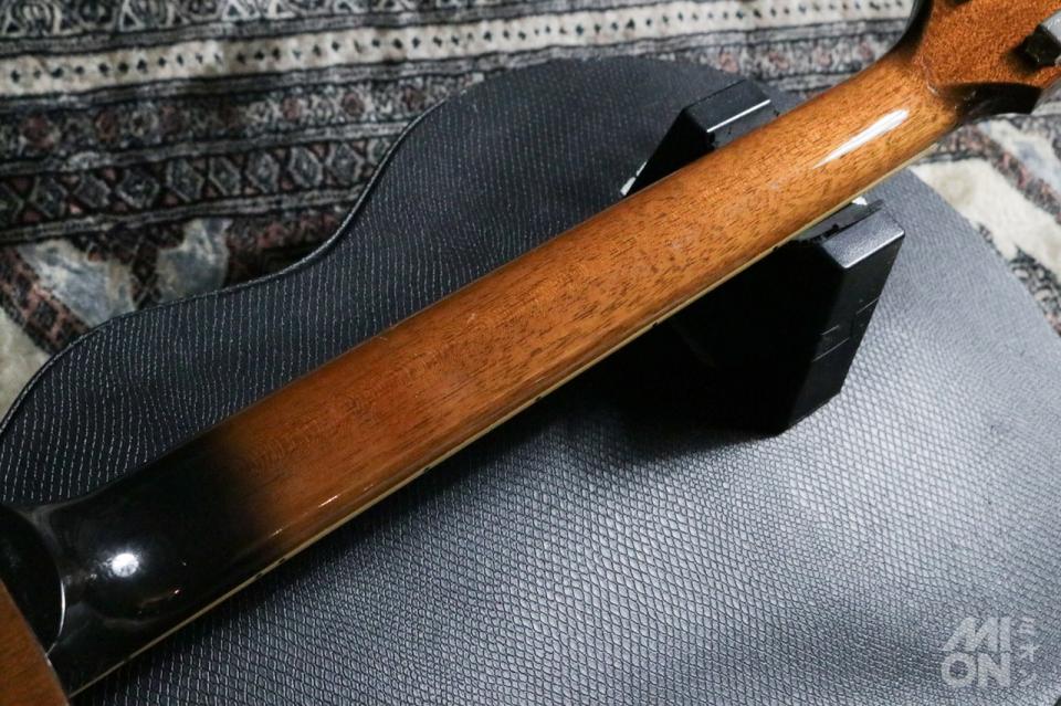 【外観・コンディション 】ネック折れ修正跡の他、全体的に傷や削れ、打痕やパーツのくすみなど多くございます。現在演奏に支障はきたしていません。