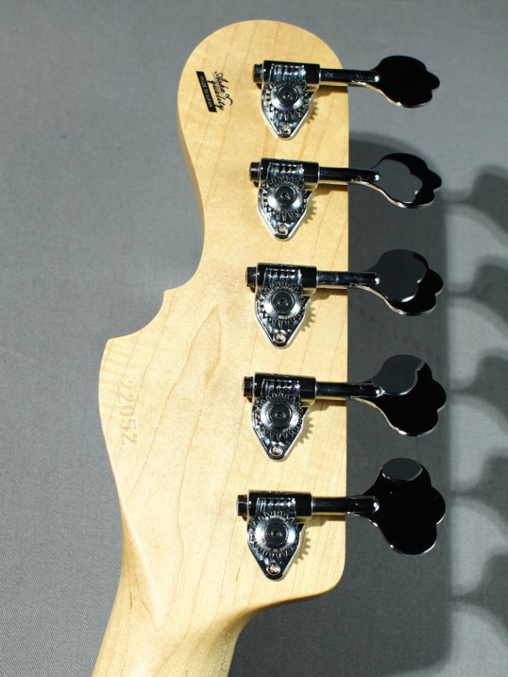 特徴は片側5連ペグ仕様でラージヘッドを採用している点になります。ラージヘッドを採用する事で豊かなミッドレンジが生まれ特に低音弦は他社の5弦モデルと比較して大変4弦ライクなサウンドと言えます。