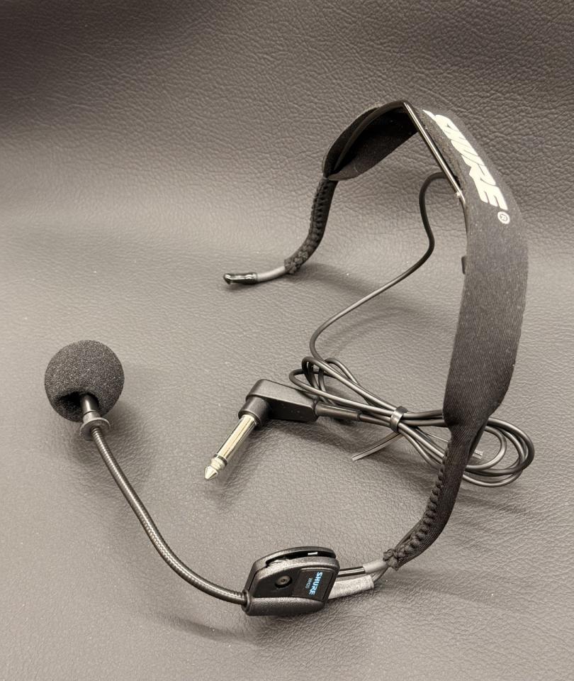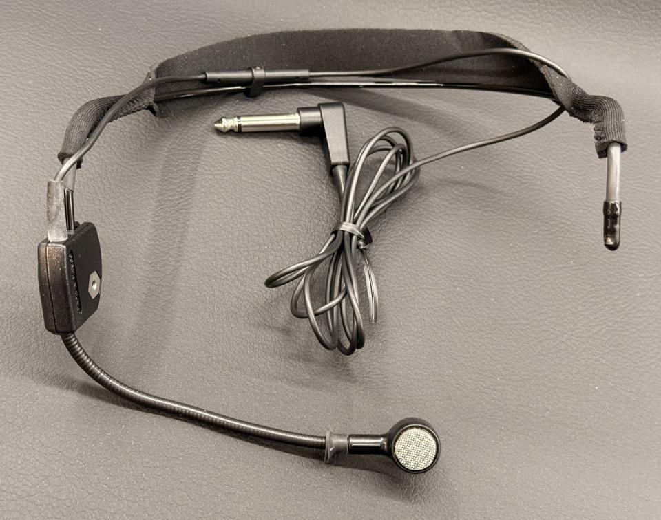 モノラルのフォンジャック端子を備えたヘッドセットタイプのダイナミックマイク。