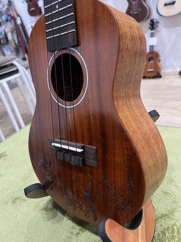もちろんデザインだけではなくウクレレとしてもおすすめの品質です。トップはマホガニーの単板でサイドバックはマホガニーの合板です。楽器の響きを司るトップを単番にすることでマホガニーの柔らかかつ深い響きを引き出しています。初めてのウクレレ、初めてのコンサートサイズにおすすめの一本です。