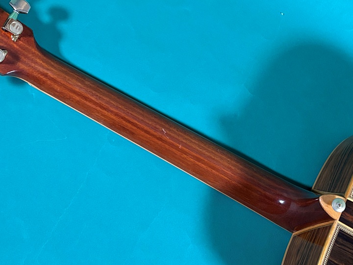 1994年製のヤマハのカスタムオーダーモデルが入荷しました。ワンオフ品ならではの、サウンドにこだわったスペックで仕上げられた一本で、サイドバックにはハカランダを使用した逸品です。もちろんカスタムオーダーのため、使用されている材料も最高級の材が選ばれています。