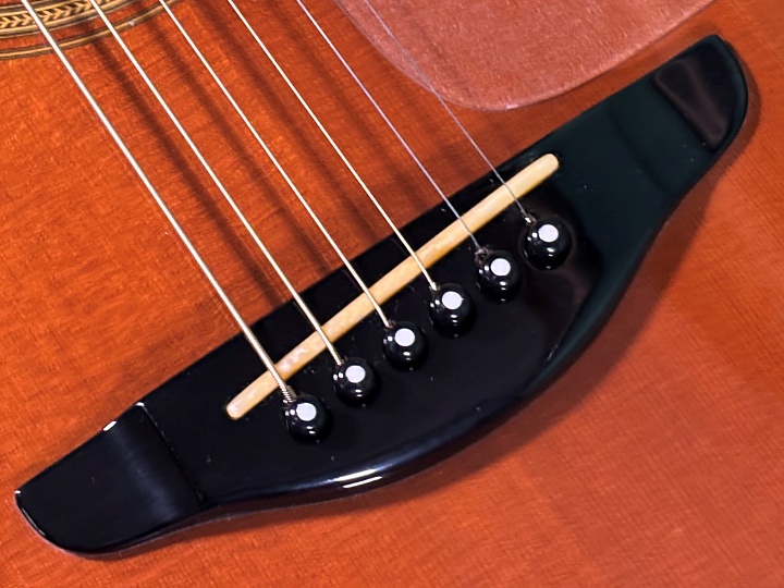1弦:1.6mm、ナットとサドルはボーン素材で、サドルしろはやや低めです。トラスロッドも問題なく機能し、フレットの高さにも十分な余裕がありますので、当面はメンテナンスフリーでご使用いただけます。