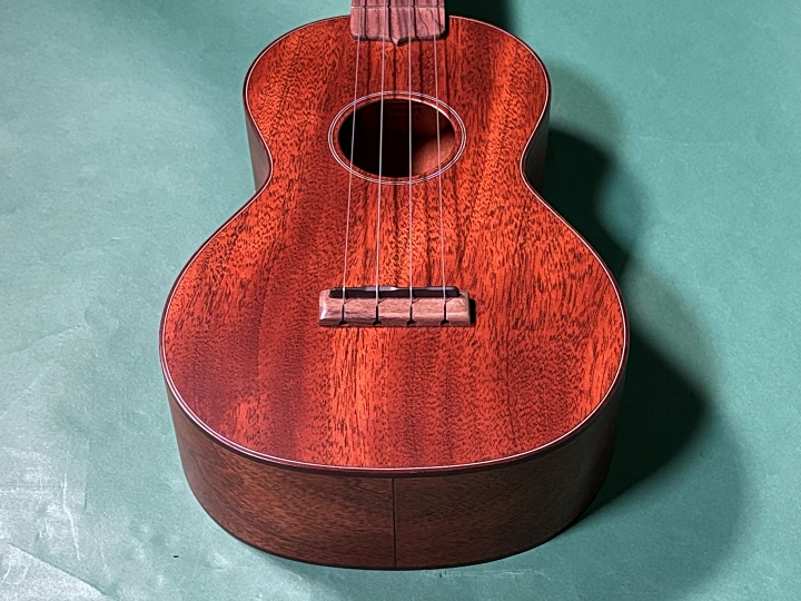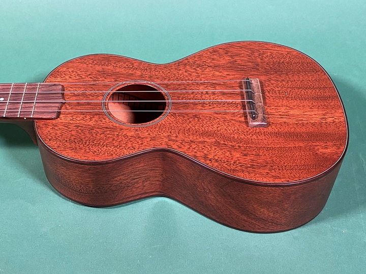 サウンドは温かみがあり豊かで、中音域にふくらみがありつつ、高音域もレスポンス良く鳴ります。伴奏はもちろん、ソロウクレレでも気持ち良く演奏できる一本です。新品楽器ならではの、弾き込んで育てる楽しみもあります。