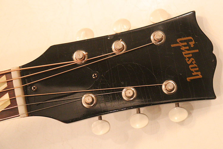 当時のギブソン・アコースティックのラインナップの中では、中級機種にあたり、マルチ・バインディングボディや、指板のバインディングやダブル・パラレログラム・インレイ等が中位機種ならではな外観です
