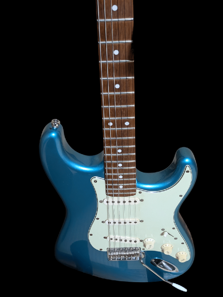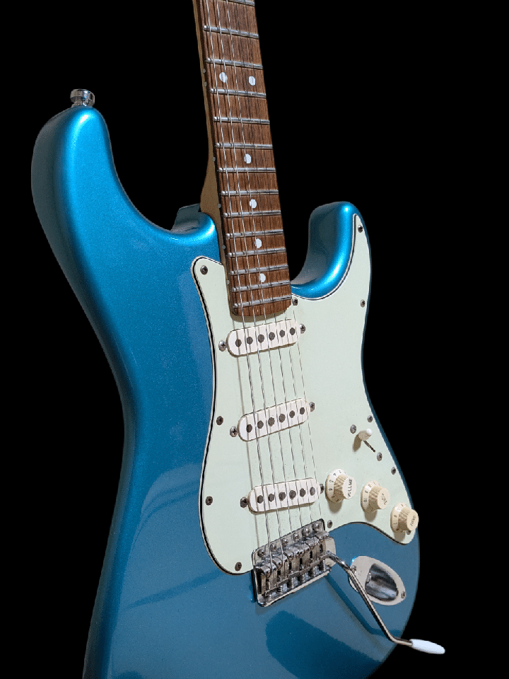 国産オーダーメイドのSTタイプ。浅めのアールで現代的な演奏性