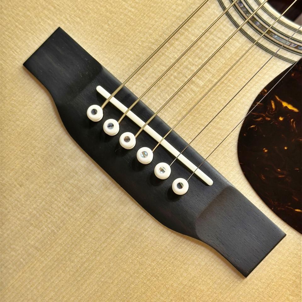 フィンガースタイルでは、指の腹でそっと触れるだけでも、アディロンダック・スプルースらしい芯の太いサウンドがしっかりと立ち上がります。
