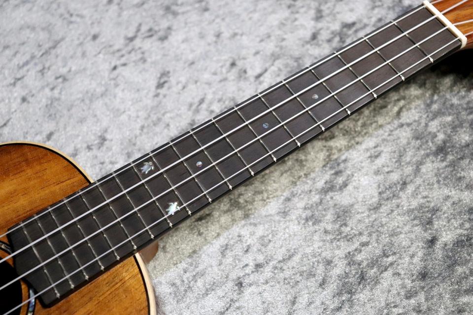 ハワイのウミガメ「ホヌ」をイメージした独特な形状のヘッドデザインを持つBIG ISLANDウクレレの中で最も高い人気を誇るKMシリーズのコンサートウクレレ。ヘッドシェイプだけでなく、12フレットのポジションマークにもホヌのデザインモチーフが使われています。