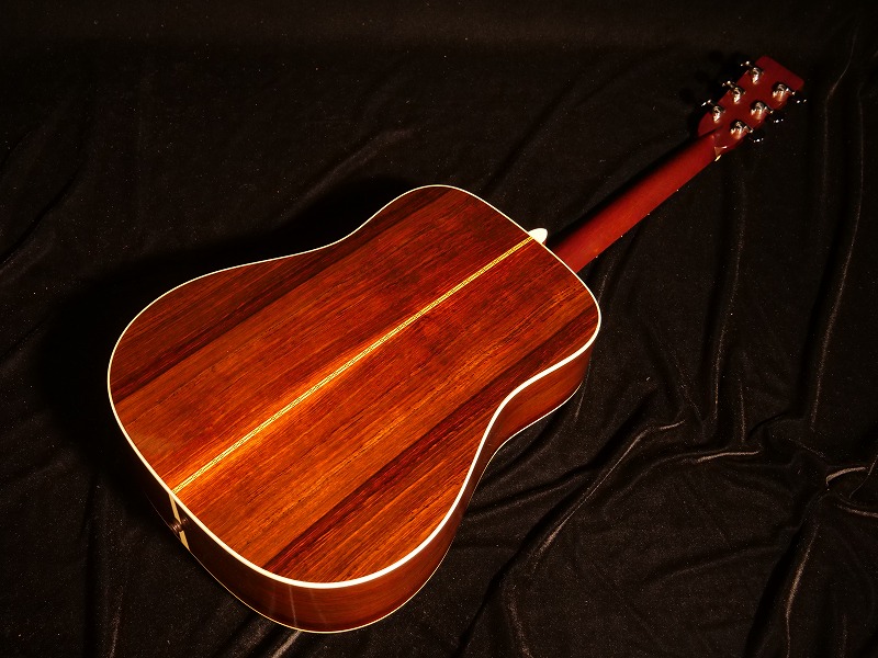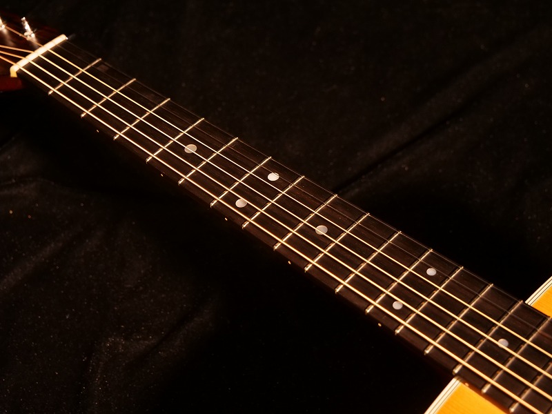 ALL単板ボディ(スプルースTOP、インディアンローズウッドSIDE&BACK)、マホガニー1ピースNECK、エボニー指板&ブリッジ、シャーラーペグ、MOP指板ドットインレイ、アジャストロッド(AJ)、メイプルブリッジプレート、ノーマルシフト・ノンスキャロップドXブレイシング仕様です。