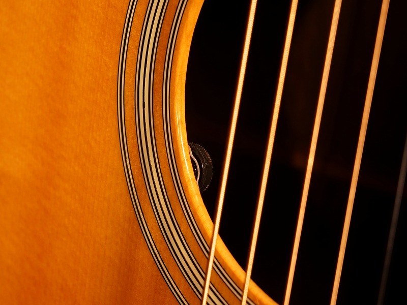 サウンドは太くふくよかでありながら、芯の通った伸びやかな響きが特徴です。ボディ全体がしっかり振動する“箱鳴り感”があり、弾いた瞬間に空気を押し出すような豊かな音量を感じていただけます。全体的に艶のあるトーンで、ノンスキャロップドブレーシング特有のコシの強さとタイトさを兼ね備え、70年代モデルを思わせる骨太で力強い鳴りが魅力です。特に低音は「ドスン!」と腹に響くような迫力がありながらも輪郭がはっきりしています。また音の分離が良くまとまりもあるため、歌もののバックに非常に適しており、ボーカルの帯域を邪魔しないバランスの良さも特長です。力強いストロークはもちろん、繊細なアルペジオやフィンガースタイルにも素直に反応し、幅広いジャンルでオールマイティーにお使いいただける一本です。