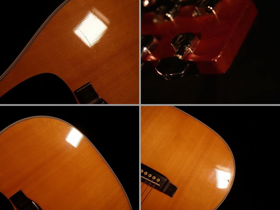 コンディションは、ヘッド先端の傷、ボディトップの所々に打痕、ウェザーチェックが見受けれますが一歩離れると目立ちません。木部のクラックリペア歴やマーチンクラックも無く製造から38年モノとしては良好なプレイヤーコンディションです。ストラップピンの取り付け跡はありません。