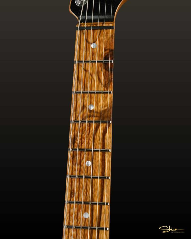 中音域を中心にふくよかで暖かみのあるトーンウッドで、ハードウェアやピックアップの特徴を反映しすい材質ですので本機Shue Guitars のようなコンポーネントギターとの相性は抜群。軽量で初めから鳴りが良いのも大きな魅力です。