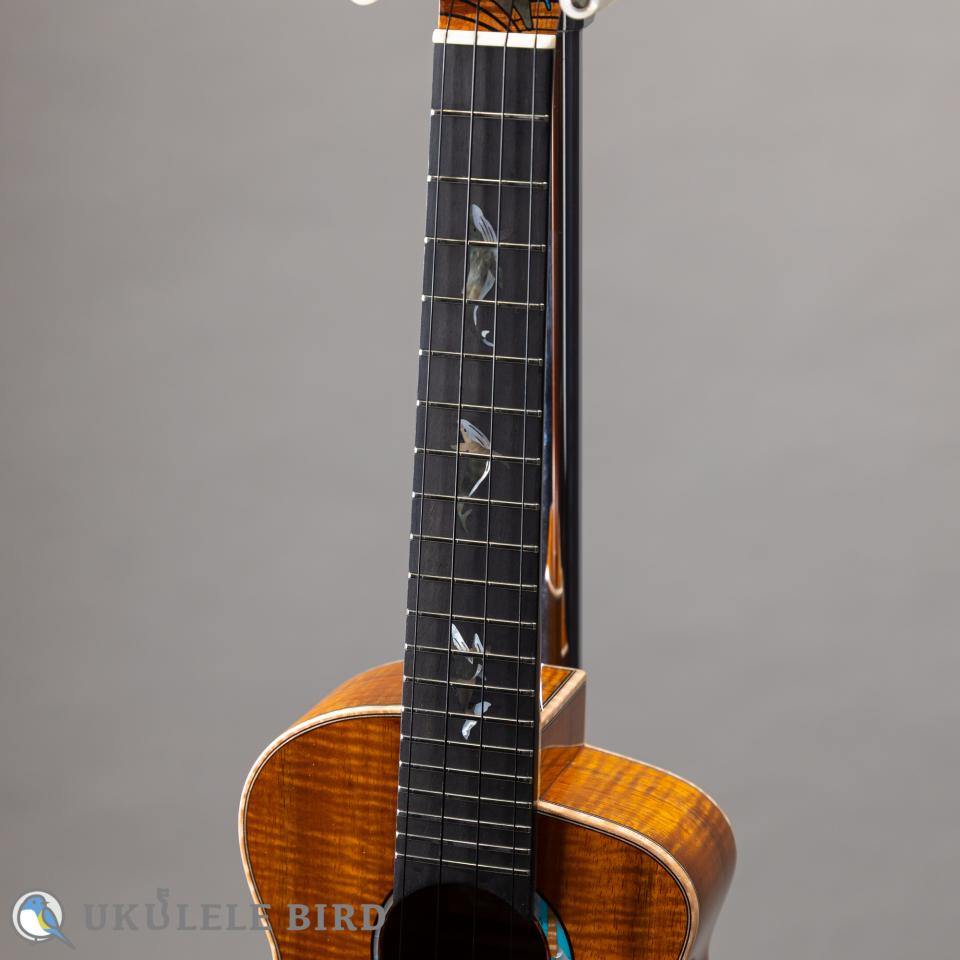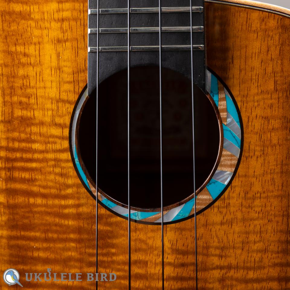 KYASのホームである高知県を象徴する鯨のインレイや、太平洋をモチーフにしたターコイズを使ったロゼッタを施した、アヌエヌエ最上位モデルです。表現力豊かなサウンドで、特に高音部の伸びやかな響きは格別です。