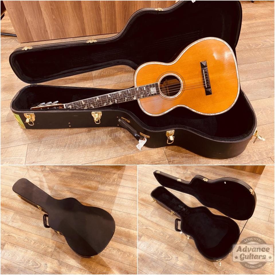 指板にあしらわれた蔓のインレイ、ロゼッタ、ボディトリム、サイド/バックに施された白蝶貝のインレイ、ネックヒールに施されたフラワー彫刻など、芸術品といっても過言ではない豪華な1本です。