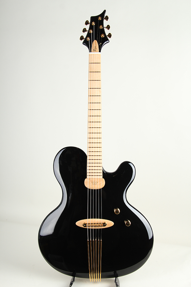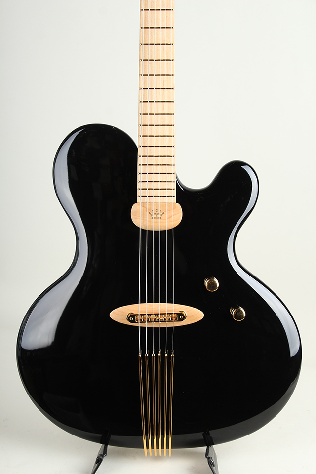 重厚な造りを感じさせる質感ながら、ボディは非常に薄く設計されており、アコースティック感豊かな響きを実現しています。Haeussel製カスタムピックアップとの組み合わせにより、煌びやかで立体感のあるトーンを生み出し、ジャズギターを思わせる美しいクリーンサウンドと芳醇な倍音感をご堪能できます。