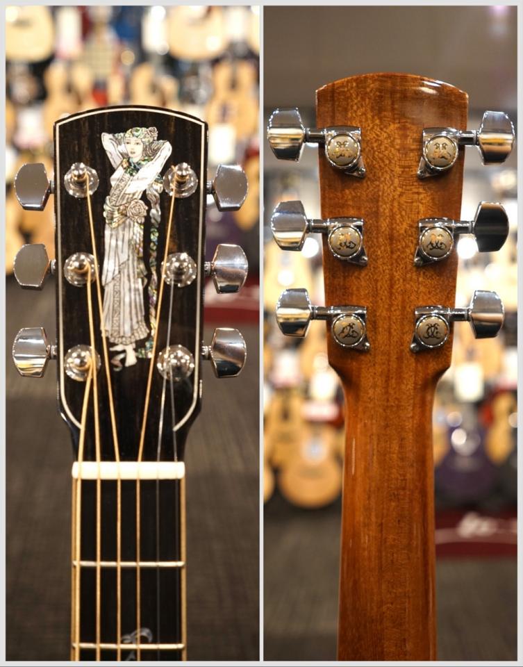 指板のインレイも含めるとあまり市場に出回らないであろうヘッドに刻まれた女性と、