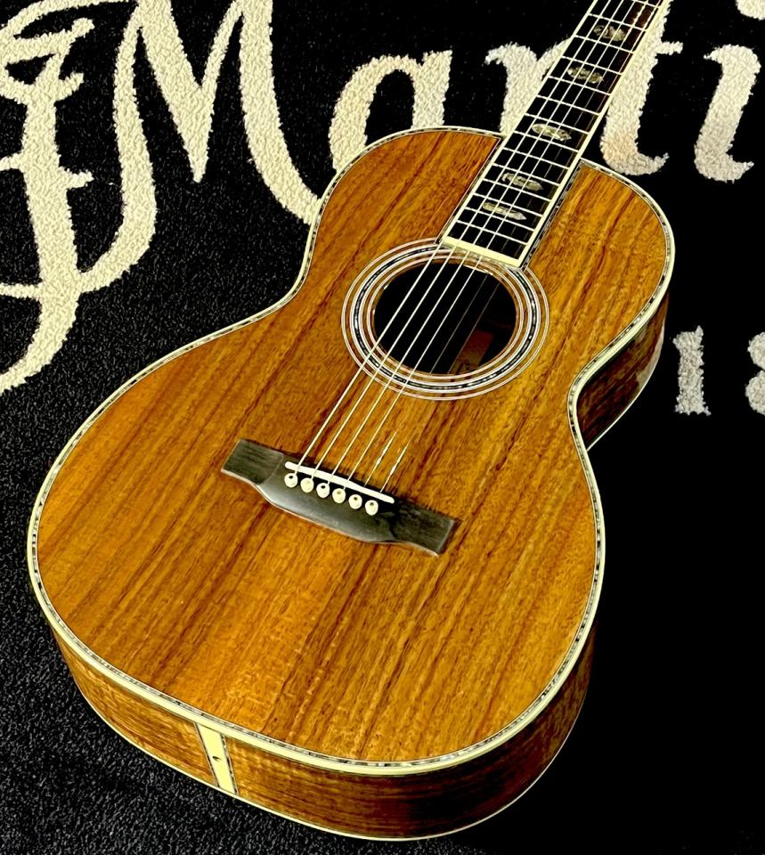 今回カスタムオーダーで復活した本器「00-45K2」は、1917年から1935年の間のハワイアンブーム時に少数生産されていたプリウォー仕様のギターへのリスペクトに端を発します。その希少性や他の追随を許さないルックスの美しさから多くのファンの憧れも的となっているモデル、「00-45K2」が1本限定、復活でございます。