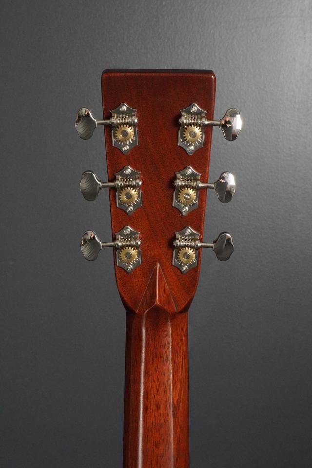 現在のスタンダードモデルは、新品時からアンティークな風合いになるよう、トップの色合いを若干飴色にしたエイジングトナーのカラーとなっておりますが、こちらは色白なスプルースが綺麗な顔付きで、経年で微妙にですが自然に焼けたエレガントな顔をしています。