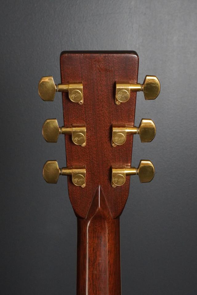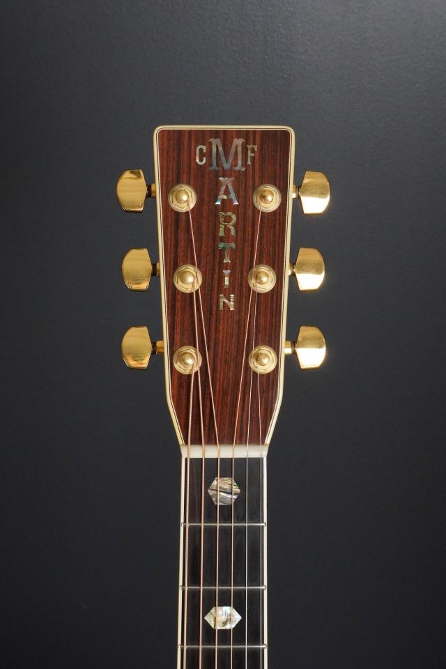 アバロン貝のC.F.Martinの縦ロゴが入り、Martin刻印入りのゴールドのチューナーが付いています。