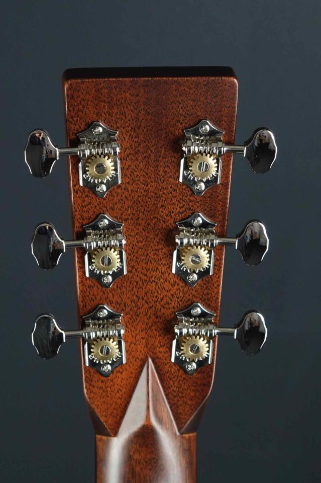アディロンダックスプルースのフォワードXスキャロップブレーシング、T-Barタイプのトラスロッド、スロテッドダイヤモンドのポジションマーク、オールドスタイルのマーチンロゴ等、ヴィンテージのスペックを再現したこだわりのカスタム品です。