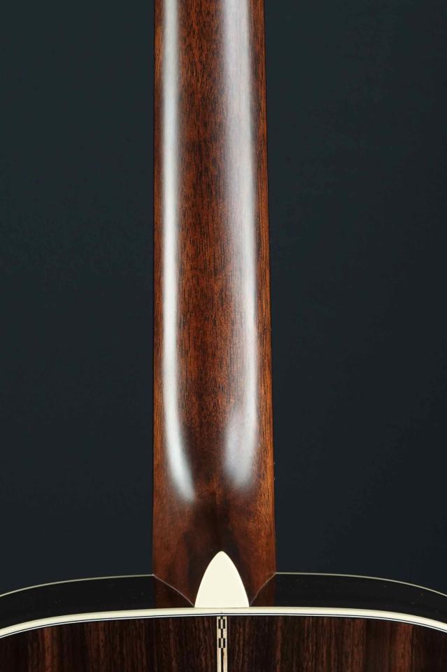 サイドバックは色が濃く、ストレートな杢目のプレミアムグレードのインディアンローズウッド。