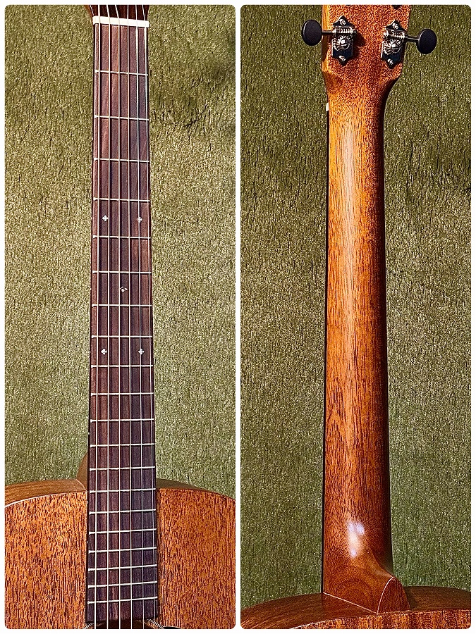 ■塗装:マホガニーカラーのサテンフィニッシュ(艶消し塗装) 触り心地が良く、塗膜が非常に薄い為木材の振動を妨げ難い。