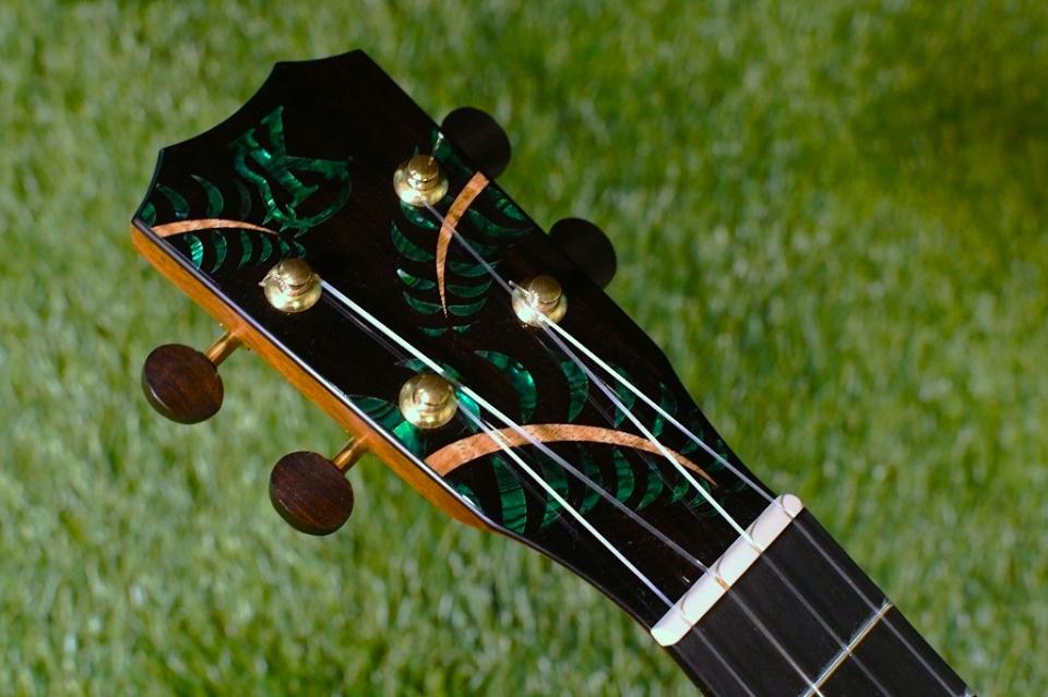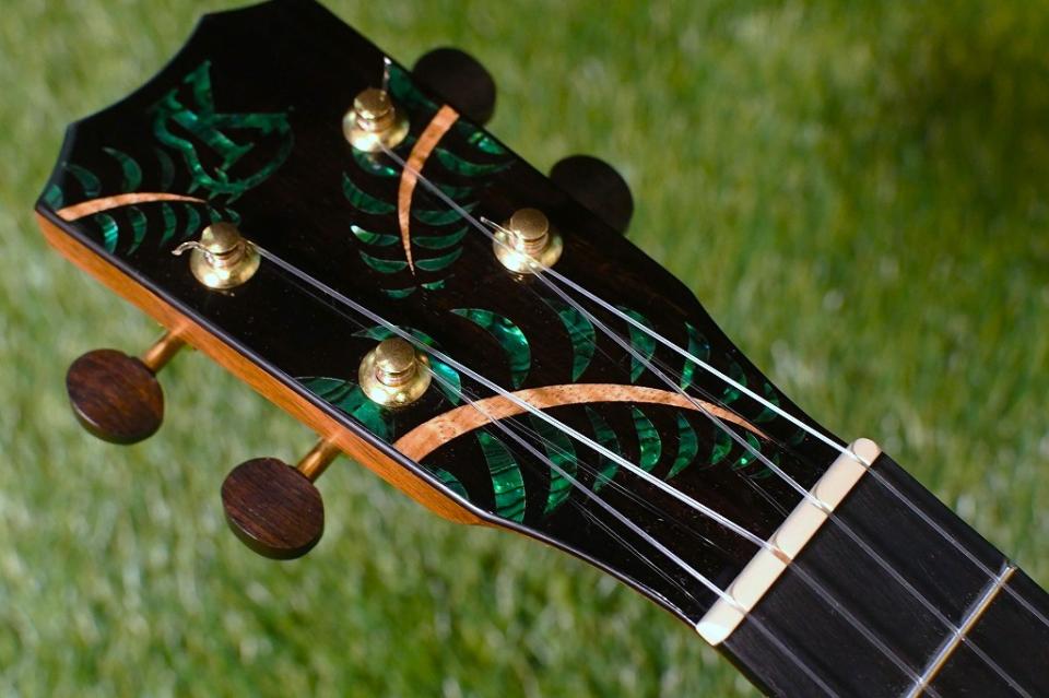 ハワイアンコアの杢目とヘッドのインレイが美しいテナーサイズ