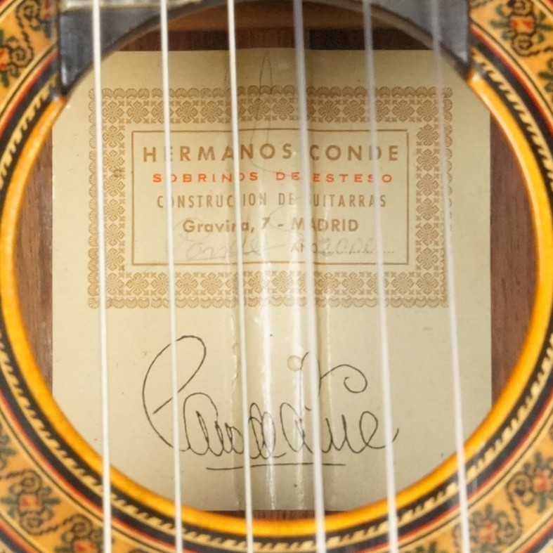 Conde Hermanos [コンデ・エルマノス]:ドミンゴ・エステソ(Domingo Esteso)の甥で後継者となったマリアーノ・コンデ(Mariano Conde)の2人の息子、フェリーぺ・コンデ(Felipe Conde)とマリアーノ・コンデII世(Mariano Conde II)がエステソの伝統を受け継ぎ改良を重ね、製作するフラメンコギター。立上がりの早さと太い低音、哀調を帯びた高音で、多くのフラメンコギタリストが使用する名器。(Conde Hermanos/コンデ・エルマノスのキーワー ド検索結果はこちら)