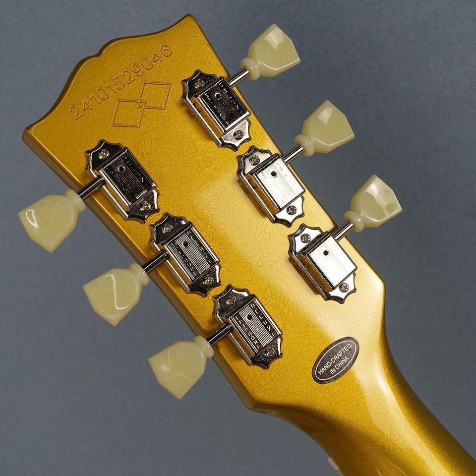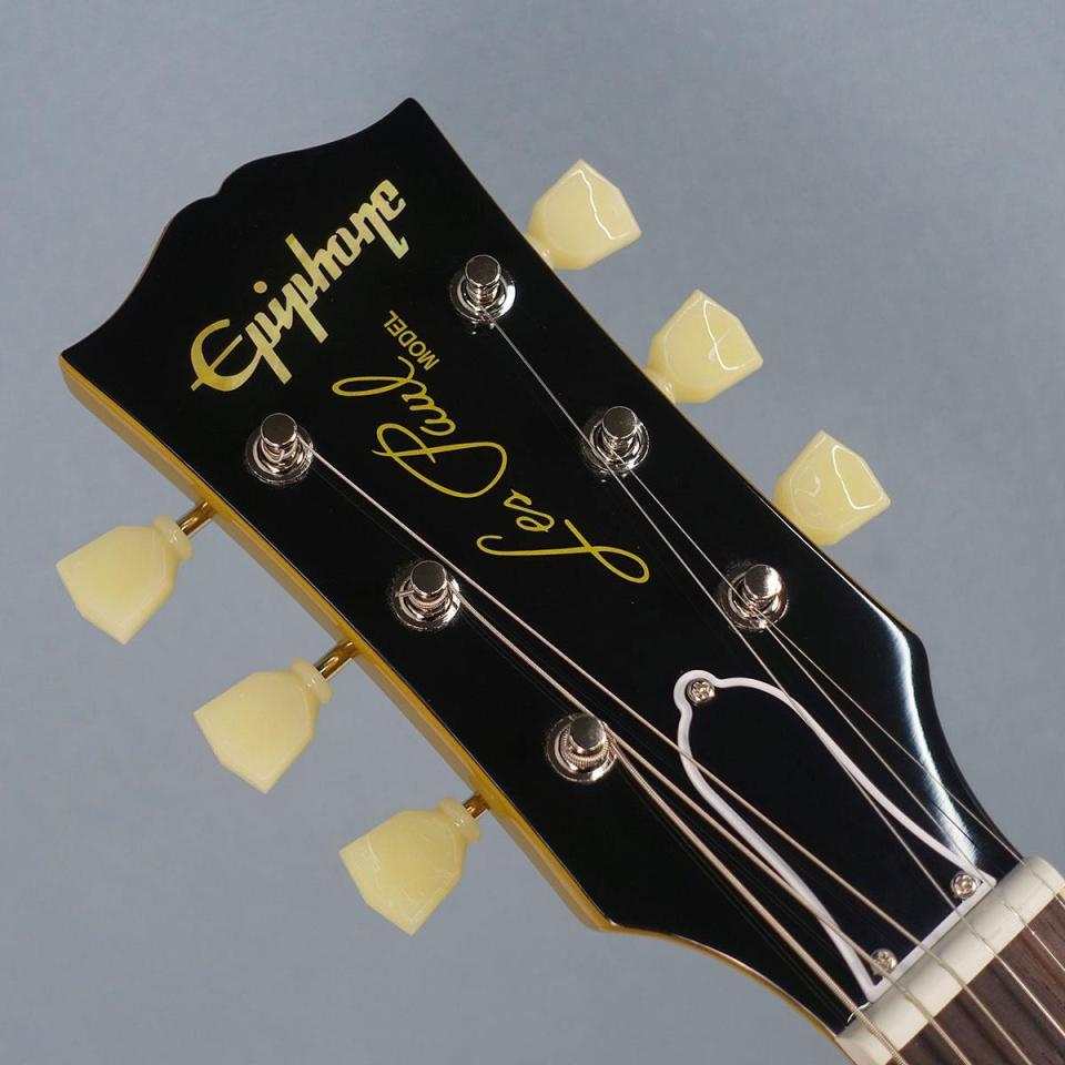ヘッド面には1955年製と同様に若干下側に配置されたマザーオブパール・エピフォンロゴがあしらわれ、ギブソンスタイルの「オープンブック」ヘッドストック・シェイプを採用。