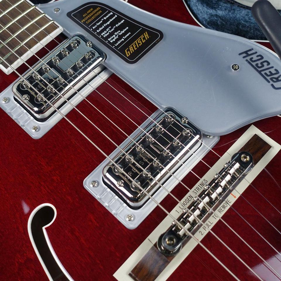 本モデルに採用されている新設計のArc-Toneブレーシングは、Gretsch史上、最も先進的なブレーシングデザインで、Gretschのホロウボディギター特有のオープンな響きを保ちながら、サスティンを向上させ、歯切れの良い音のアタックと優れたフィードバックコントロールを実現します。