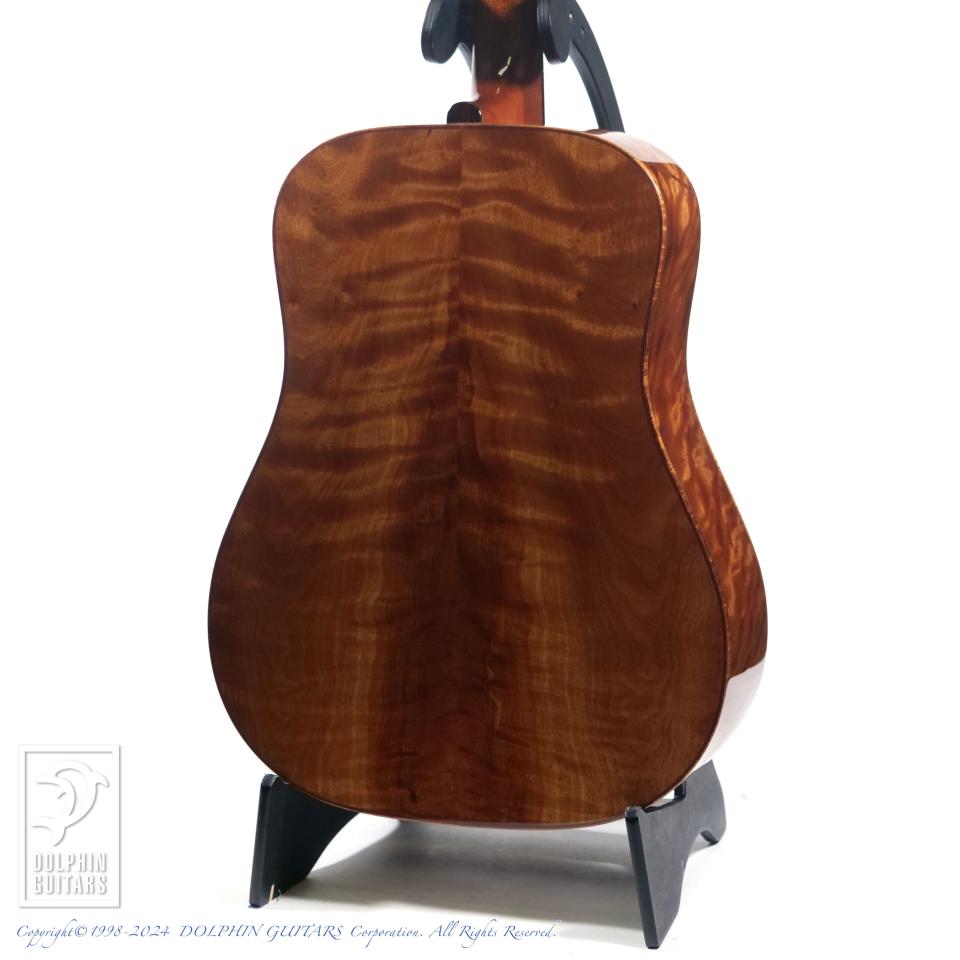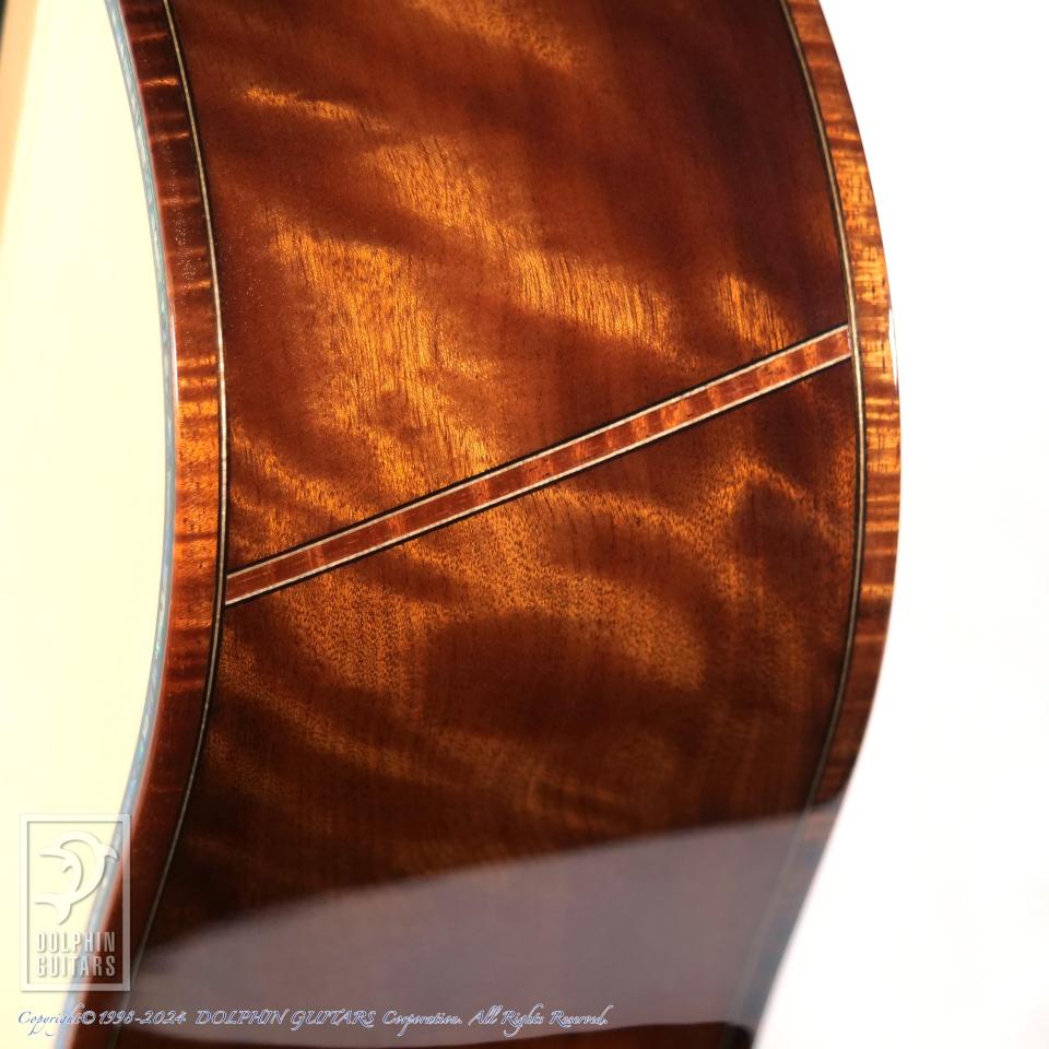 そんな神護木(カゴノキ)と貴重なアディロンダックスプルースの組み合わせによる特別仕様がこちらの一本。アディロンダック・スプルースのダイナミックなサウンドと、神護木の澄んだ柔らかい音色との組み合わせにより、ストロークにもフィンガーピッキングにも適した一本。神護木の優雅で神秘的な杢目は、感動を誘います。