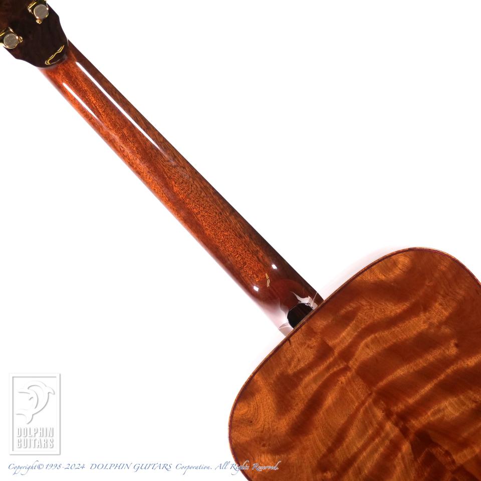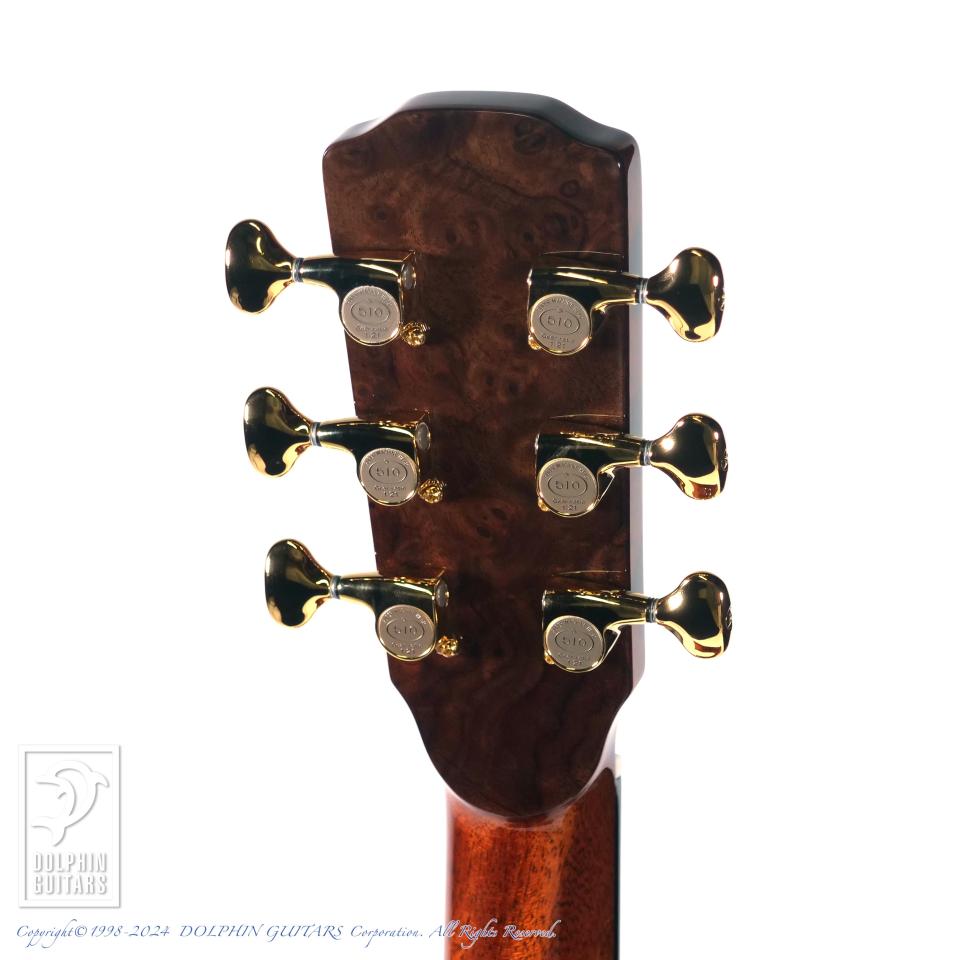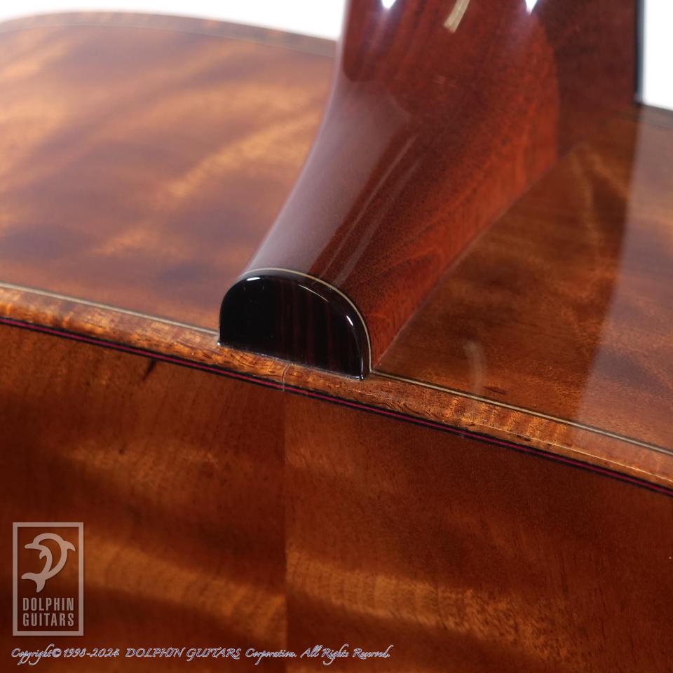 幅広いラインナップを持つMORRISですが、こちらは日本の職人が日本の木材を使用し、日本をテーマに作品化することをコンセプトとした新たなシリーズ、"Japan Forest Series"。本器は、そのシリーズの中でも最高峰に位置し、マスタールシアー森中 巧(もりなか たくみ)氏が全て一人で製作し、神秘的な宮崎県産の素材、神護木(カゴノキ)を使用したドレッドノートスタイルのM-161 AD。