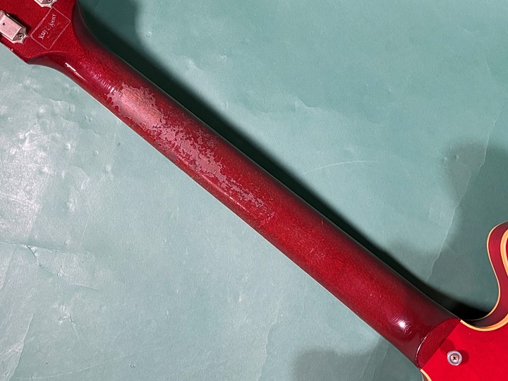 ヘッド裏にステッカーが貼ってあります。ナットはデルリン製に交換されており、サドルはタスク製に交換されております。その他は電装系等すべてオリジナルです。ピックガードに反りがみられえます。ネック裏の塗装は剥げている箇所があります。消耗パーツの交換や塗装のハゲ等ありますが、年式を考えれば悪くないコンディションだと思います。