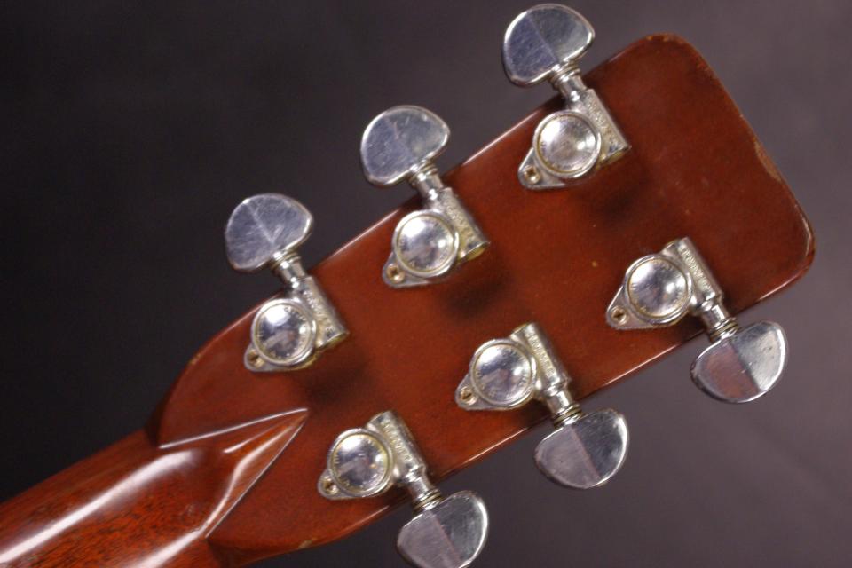 1960年代のべっ甲柄ピックガード、ロングサドル期のD-28が入荷しました!トップはシトカスプルース、サイドバックには希少材ハカランダを採用、シリアルナンバーから1964年に生産された個体でネックに演奏による塗装の剥離、所々に打ち傷、ウェザーチェックがあります。60年経過しているわりには綺麗でオールドの雰囲気が堪りません!!グローバー製のロトマチックペグ、べっ甲柄ピックガード、ブリッジもオリジナルで残っていました。ネックヒールへのストラップピンまたピックアップなど特別な加工もございません。ナット幅は約42mm、やや細めの握りやすいグリップになります。ネックのアングルは14フレット付近から若干の元起きがありますが許容範囲です。指板調整、フレットは交換されており高さに余裕があります。弦高は12フレット6弦側で約2.8mm、1弦側で約1.8mmの高さで押さえやすく調整しています。ブリッジからサドル残もありますのでお好みに合せた微調整にもお応えいたします。ハカランダに相応しい輪郭のくっきりとした硬質なサウンド!レスポンスが素早くすっきりと前に抜けてくれます!ストロークでは纏まり切れ味が最高です!!ハカランダD-28で探していた方は是非この機会にお試しください!ハードケース付き!