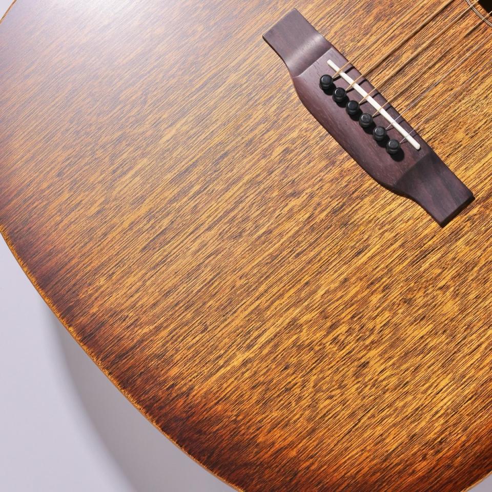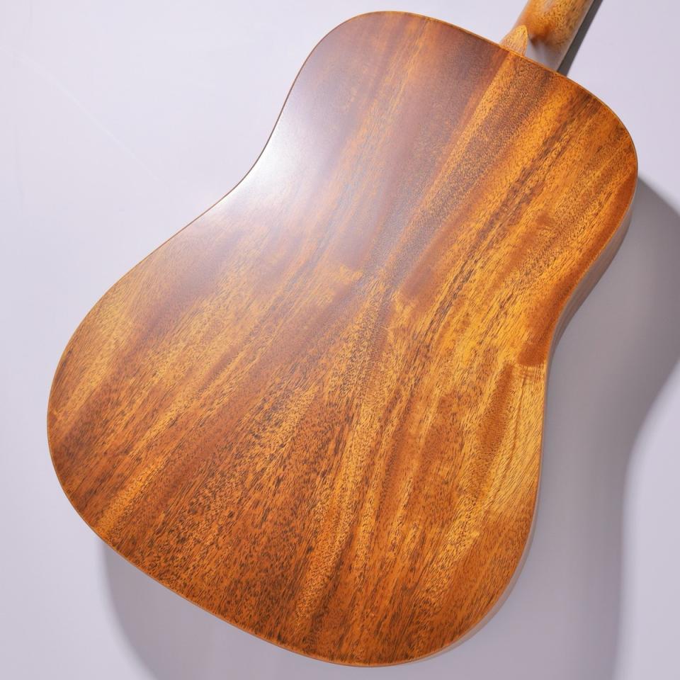 トップ、サイド、バックすべてにマホガニーを採用することで生まれるのは、温かく、芯のある、どこか土の匂いを感じさせるようなサウンド。コードをかき鳴らせば、低音はふくよかに広がりながらも輪郭は明瞭。アルペジオでは甘く、やわらかな倍音が心地よく重なります。歌の伴奏ではボーカルを優しく包み込み、弾き語りの世界観をぐっと引き立ててくれるでしょう。